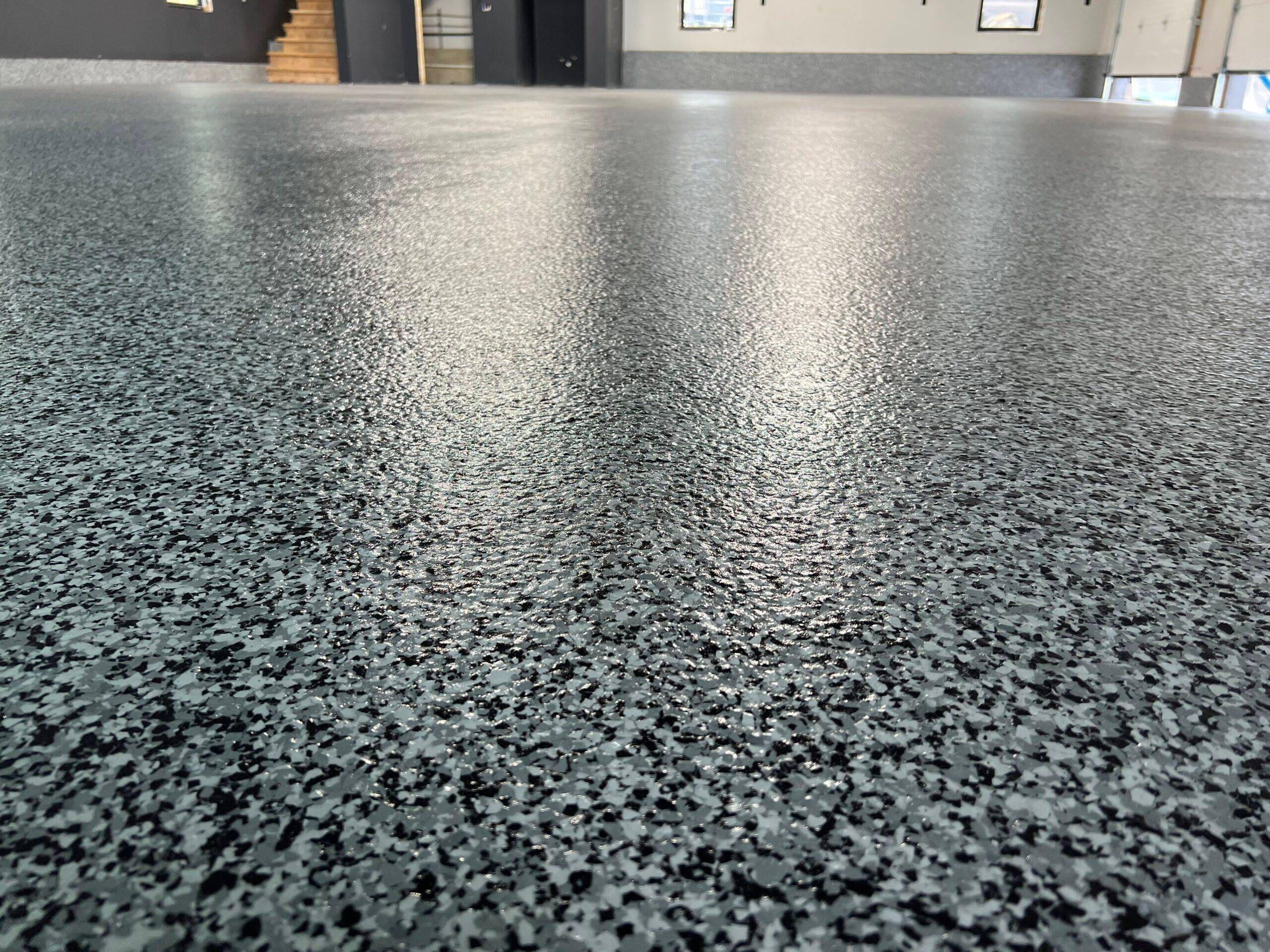 Vinyl flake epoxy is a durable and decorative flooring system that combines colored vinyl flakes with a strong epoxy base. The flakes are broadcast into the epoxy while it's wet, creating a textured, multi-colored finish that’s both visually appealing and slip-resistant.